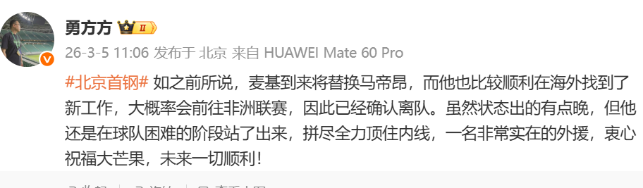 yl7703永利-刚打出状态,马帝昂因麦基加盟离队,现已找到新工作!
